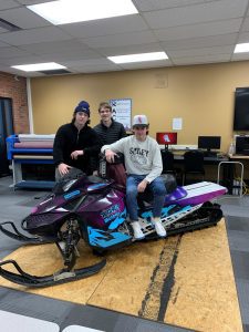 Teachers enlisted the help of an expert designer from specialist ECD Customs to offer guidance on the project, with students set the task of designing, printing, laminating, and installing the wrap on a 2008 Skidoo Summit.