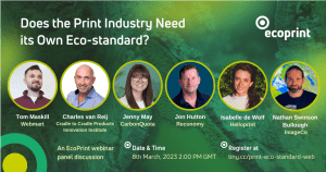 Wednesday 8th March is the next EcoPrint webinar, which features a panel of sustainability experts to discuss whether print needs an eco-standard