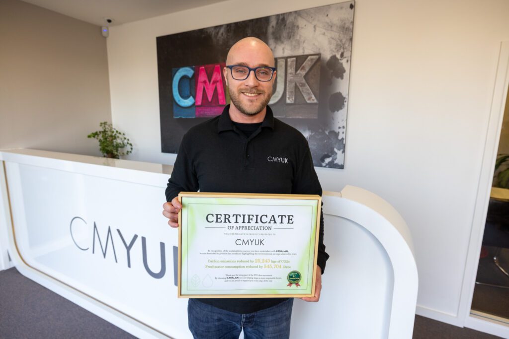 CMYUK has announced that it has been awarded a Certificate of Appreciation by Kavalan. The manufacturer presented the certificate in recognition of the measurable environmental savings achieved through the sale of Kavalan PVC-free materials to customers during 2025.