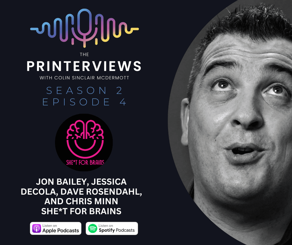In the latest episode of The Printerviews, Colin Sinclair McDermott is joined by Jon Bailey, Jessica DeCola, Dave Rosendahl, and Chris Minn, the founding team behind the She*t4Brains mental health initiative .