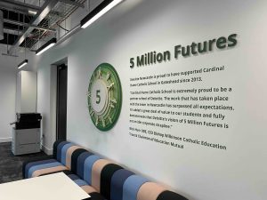 Through meticulous attention to detail, the workspace was infused with the client’s core themes, including the ‘future of the office’ and ‘shared values,’ achieved through flexible and ecologically conscious solutions. Signbox’s exploration led them to furniture-grade birch face ply, amenable to direct-to-surface printing and intricate routing. Notably, design refinement incorporated concealed rare-earth magnets for adaptable and clandestine installation, mindful of budgetary considerations.
